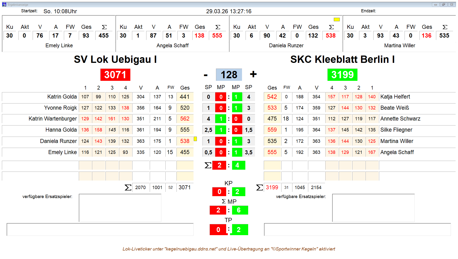 SV Lok Uebigau Abteilung Kegeln Liveticker